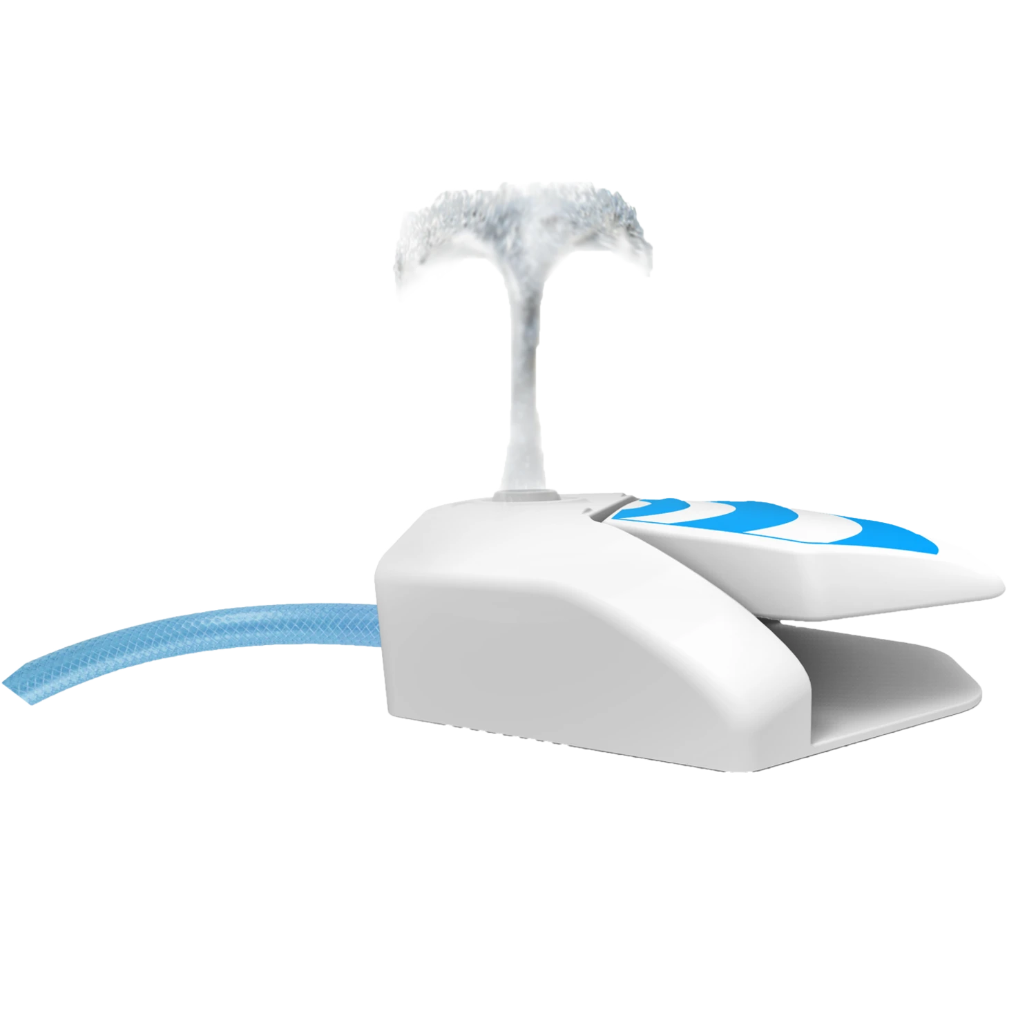 Deze waterfontein voor honden is aan te sluiten op de tuinslang. Door de hond op het pedaal te laten drukken komt er water uit. De bovenkant van de waterfontein heeft een antislip laag. De hoogte van het aparaat is 8,7 cm en de breedte is 22 cm. Met warm weer een heerlijk verkoelend speeltje voor de hond. Houdt altijd toezicht en wees voorzichtig met spelen in de zon! Let ook op dat de hond niet continu water drinkt en zich op deze manier “over” drinkt.