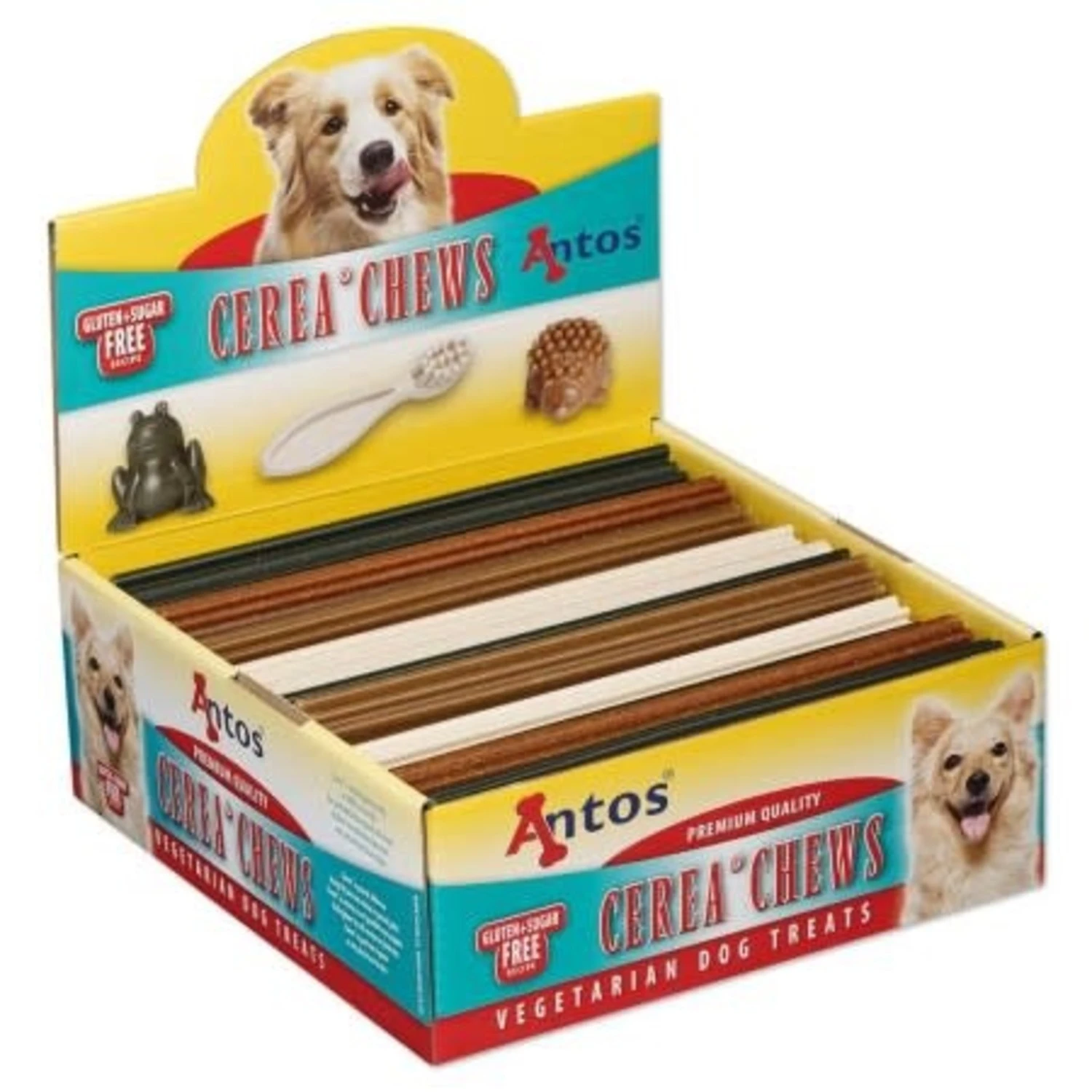 Cerea is een 100% natuurlijke en plantaardige snack voor honden. Door het hoge vezelgehalte stimuleert het de spijsvertering. Door het kauwen vermindert deze snack tandplak en voorkomt opnieuw aanhechting van plak. Cerea zorgt voor een frisse adem en een sterk gebit. Een gezond alternatief voor elk hondenras, op basis van plantaardige vezels en met natuurlijke kleurstoffen.