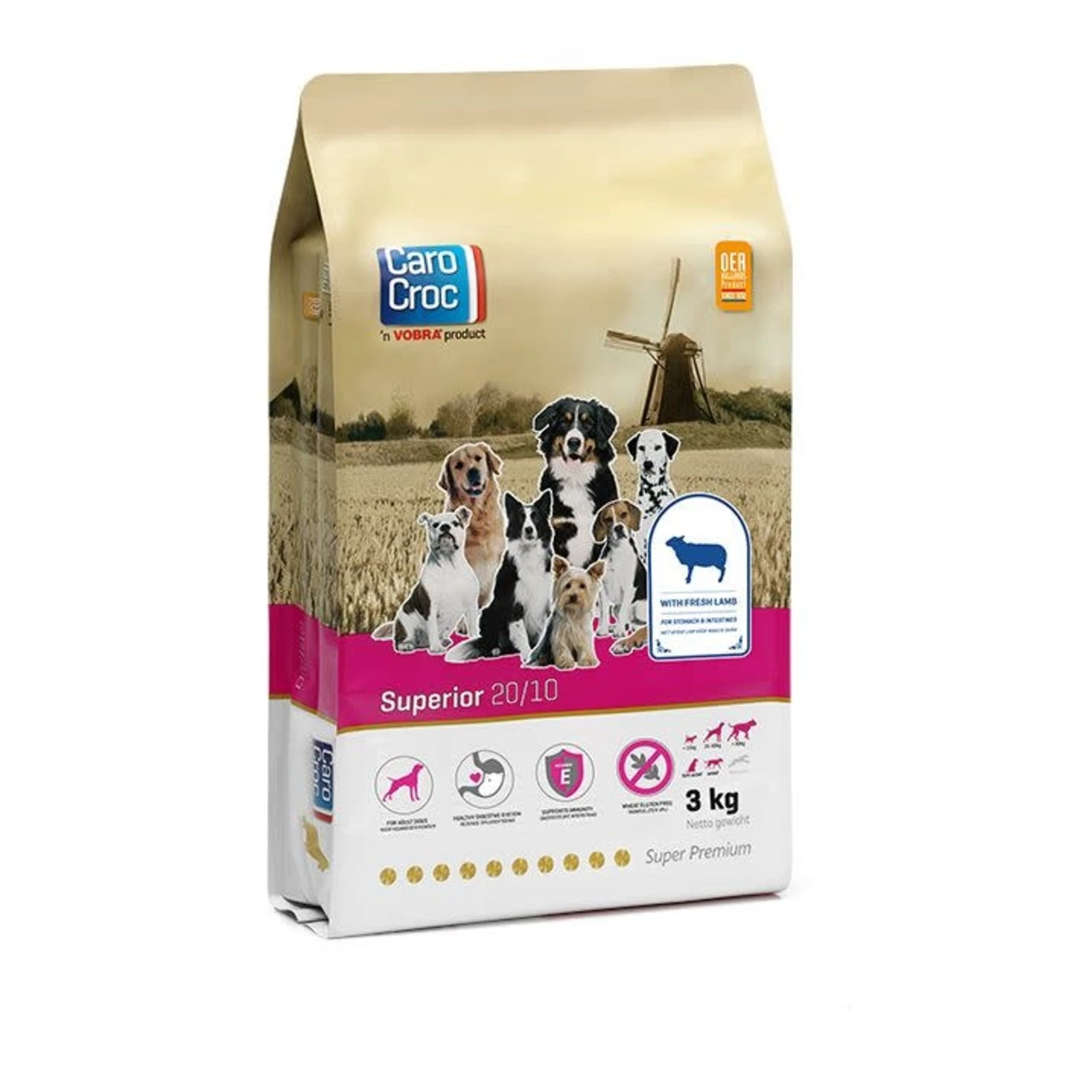 CaroCroc Superior bevat uitsluitend lam als dierlijke eiwitbron, rijst en maïs als koolhydraatbron en is tarwe (gluten) vrij. Dit product is geschikt voor honden met een voedingsallergie. CaroCroc Superior is bovendien licht verteerbaar en bevat alle voedingsstoffen die je hond nodig heeft. Â